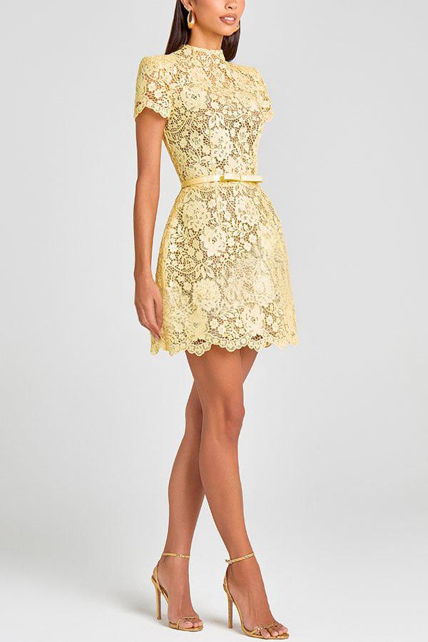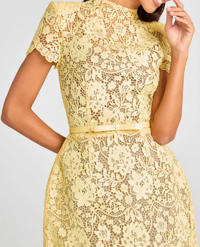 - Joyful Elegance – The delicate floral lace and cheerful yellow shade make this dress a radiant standout.