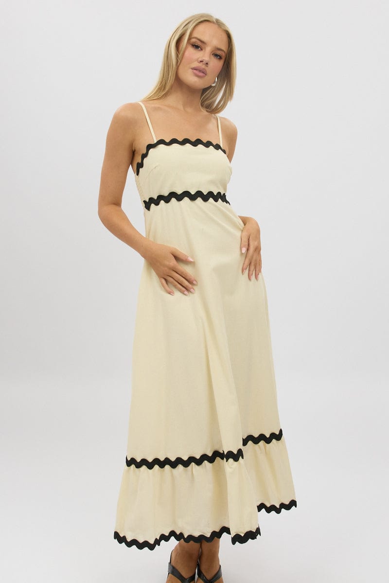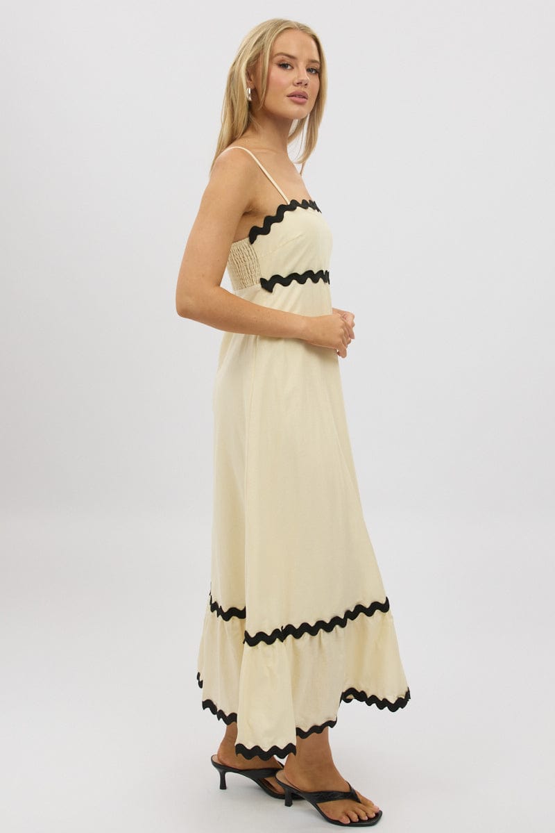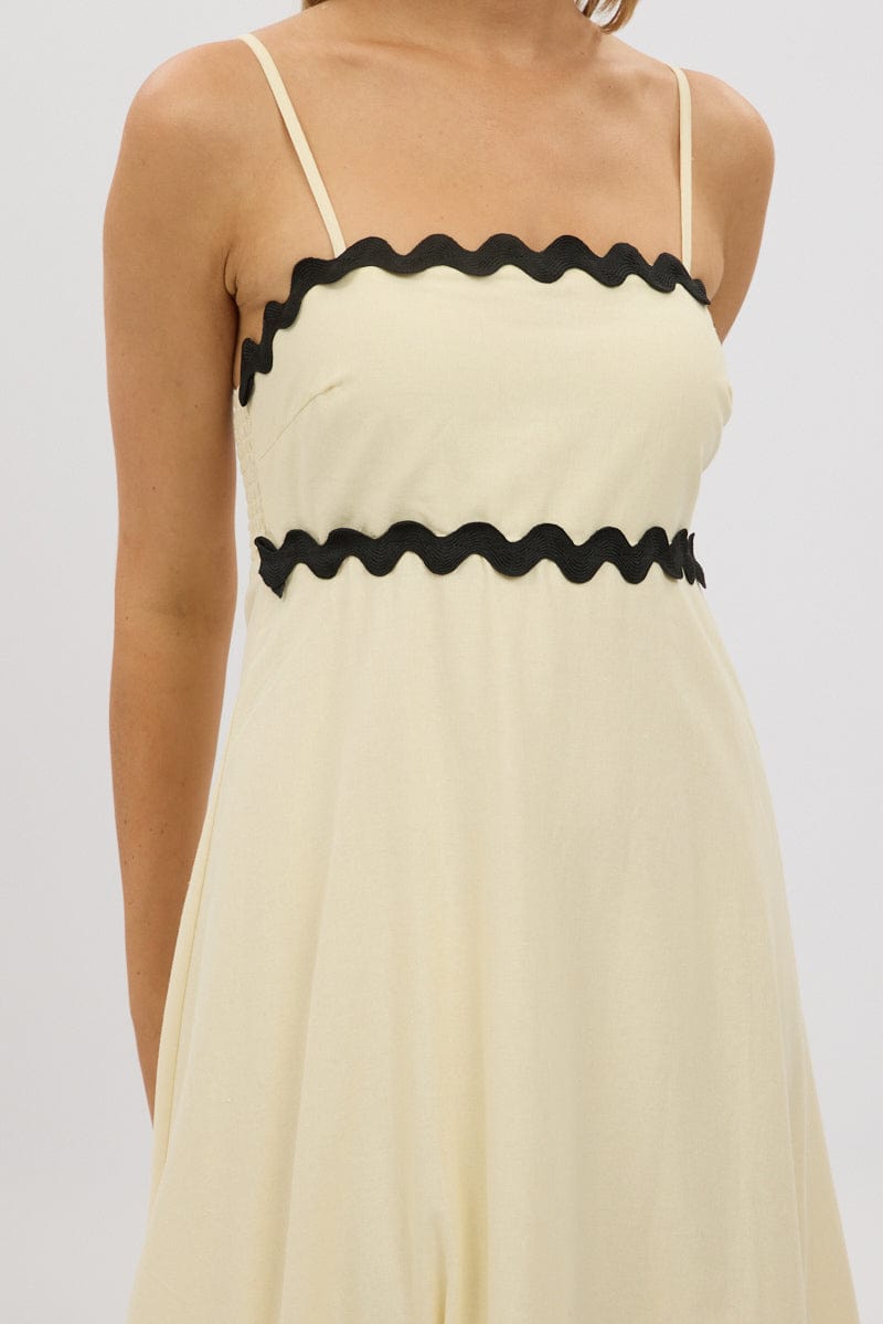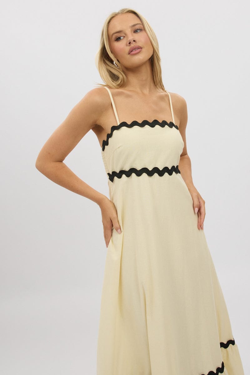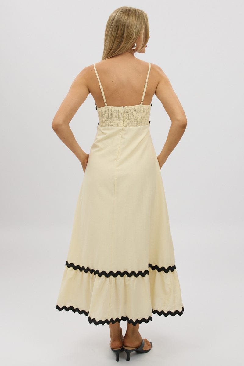 The Mila Strapless Maxi Dress is the epitome of relaxed elegance. Featuring delicate spaghetti straps and a flowing A-line silhouette, this dress is designed for effortless movement and all-day comfort. The contrast wavy trim adds a touch of playful charm, making it perfect for breezy summer days or casual outings. Pair it with sandals and minimal accessories for a timeless and airy look.