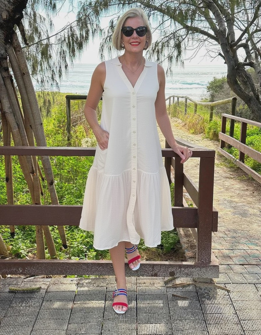 Merrin – Sleeveless Buttoned Midi Dress – Effortless Grace for Every Occasion