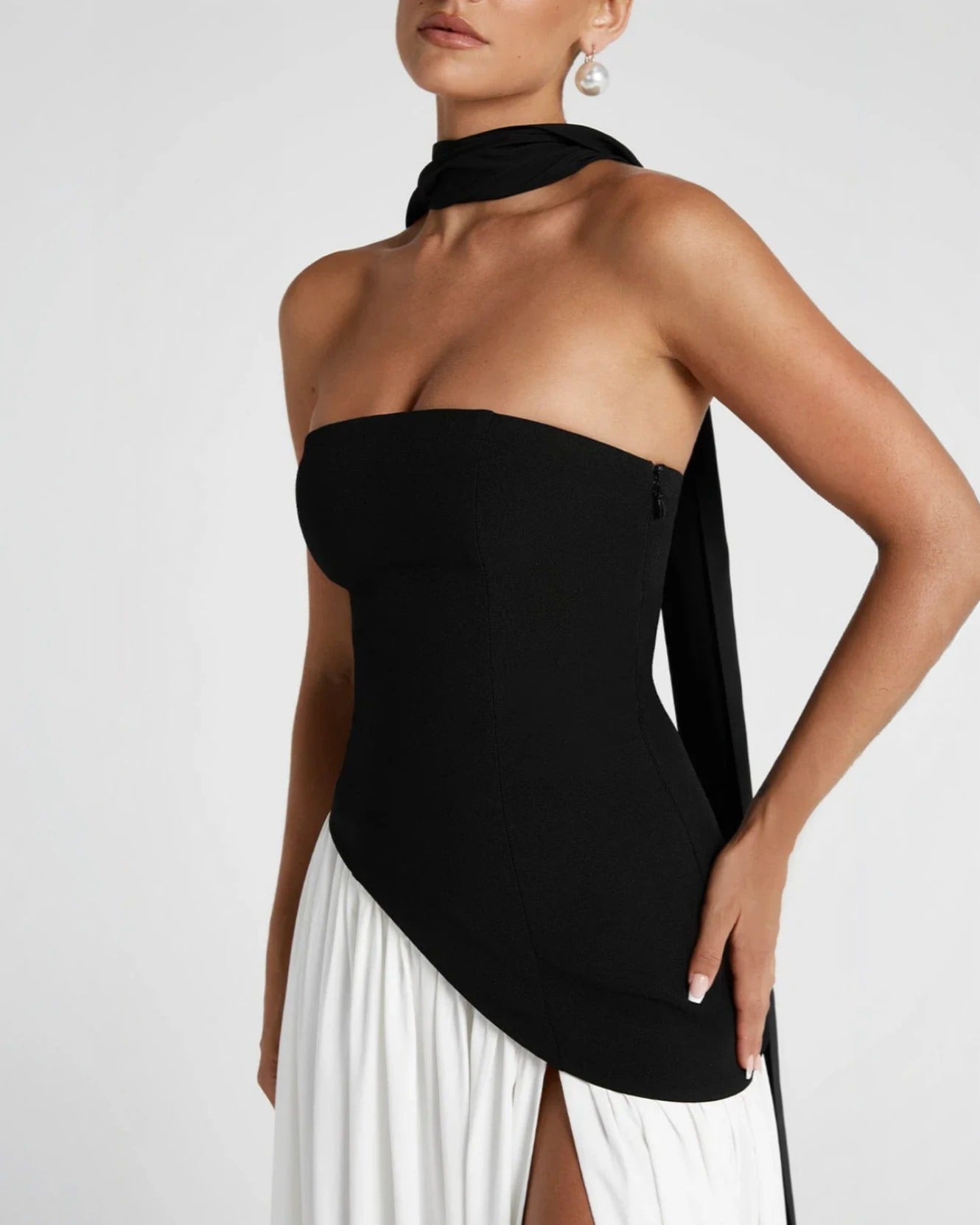The Niyah Maxi Dress is confidence in motion. With its sculpted strapless bodice, daring high slit and flowing skirt, it was made to make an entrance – and leave a lasting impression. Whether you're heading to a summer gala, rooftop soirée or a destination wedding, this dress promises grace in every step and glamour in every photo.