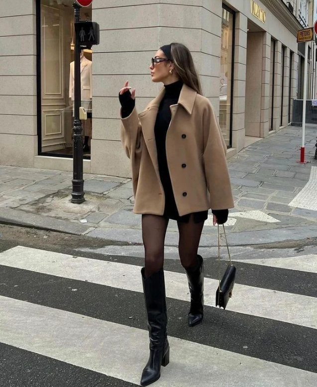 The Jenna Oversized Coat exudes an effortless sophistication that complements any outfit. With its roomy fit and structured silhouette, this beige coat is both stylish and functional, perfect for layering over chunky knits or slim-fitting turtlenecks. The double-breasted buttons add a touch of classic elegance, while the oversized lapels bring a modern twist. Paired with black knee-high boots and a matching handbag, the Jenna Oversized Coat completes a chic, city-ready look, ideal for stepping out in style on cool autumn days.
