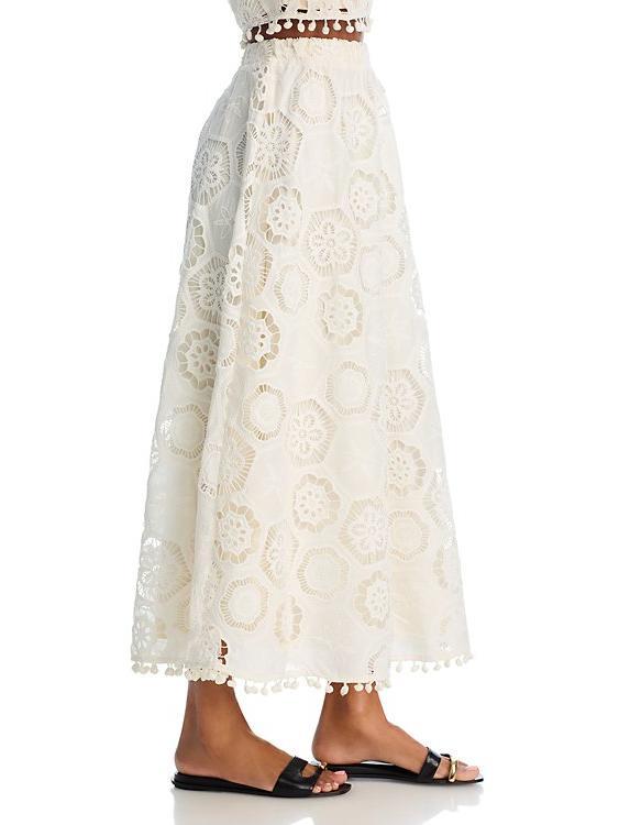 The Laura Lace Set blends bohemian charm with classic femininity. Crafted from delicate floral lace, this two-piece ensemble features a sleeveless crop top with playful pom-pom trim and a flowy midi skirt that sits comfortably at the waist. The soft off-white hue and detailed textures make it the perfect look for beach strolls, garden parties, or sun-drenched holiday escapes. Pair it with flat sandals and a woven tote for effortless elegance.
