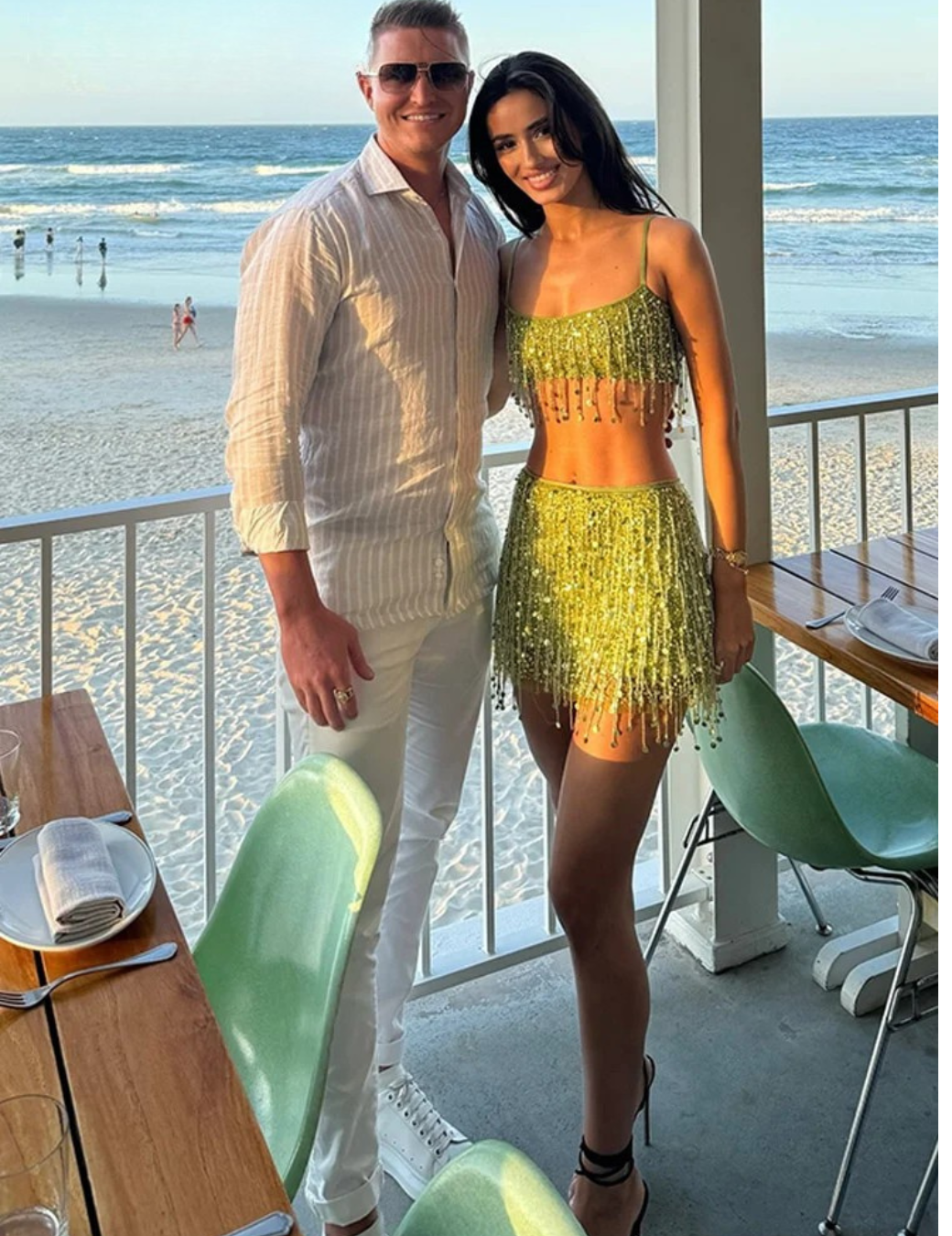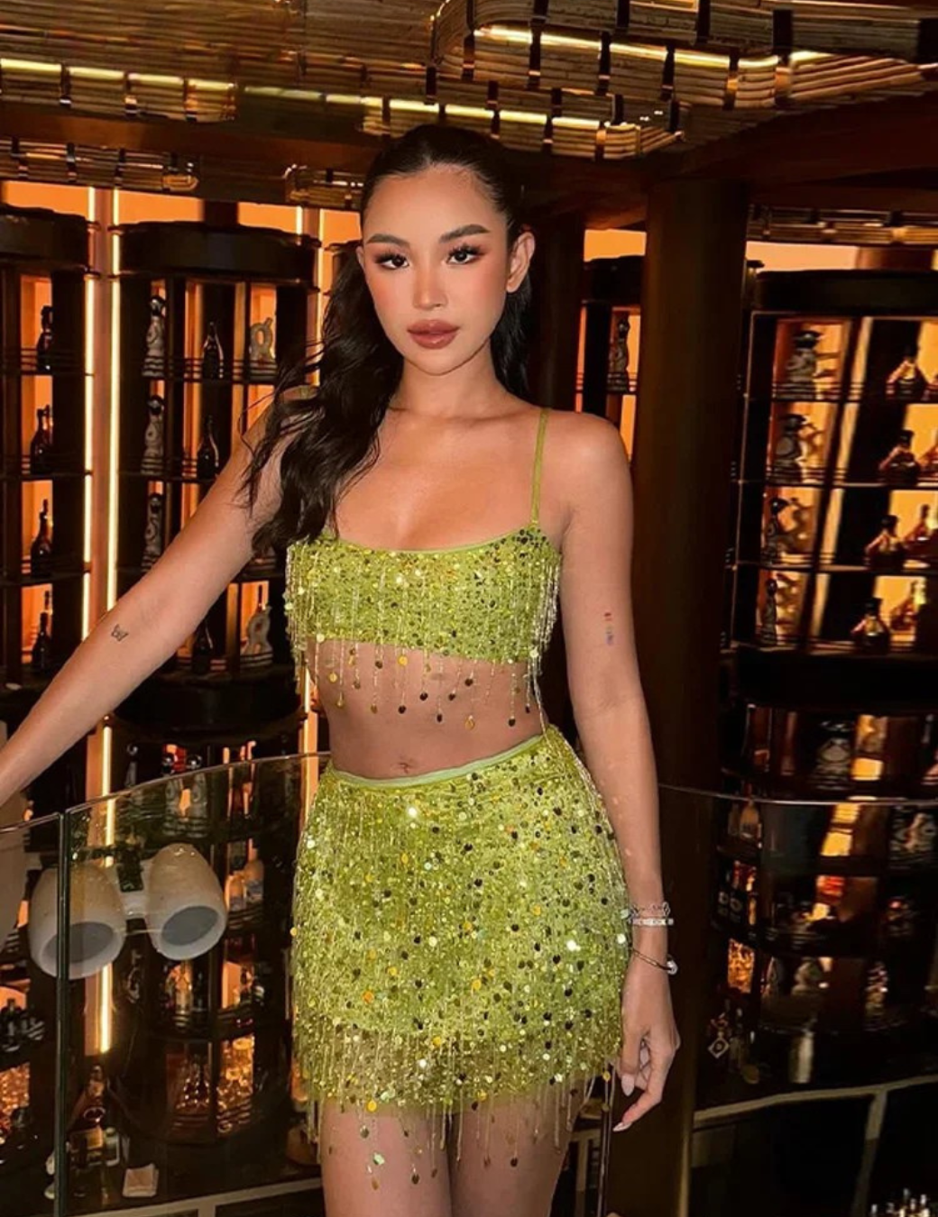 The Mera Set is made for women who move boldly and light up every room. Featuring a figure-flattering beaded crop top and a matching mini skirt, this set turns every occasion into a statement moment.